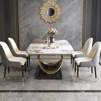 2025金色金属餐桌套装,带6把椅子,现代风格,适合家庭餐厅酒店使用