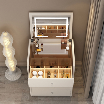 水滴送货实木化妆床头柜带抽屉凳发光二极管灯镜梳妆台卧室侧柜